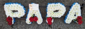 Each letter is based with white chrysanthemums with a flower cluster and charged at £45 per letter